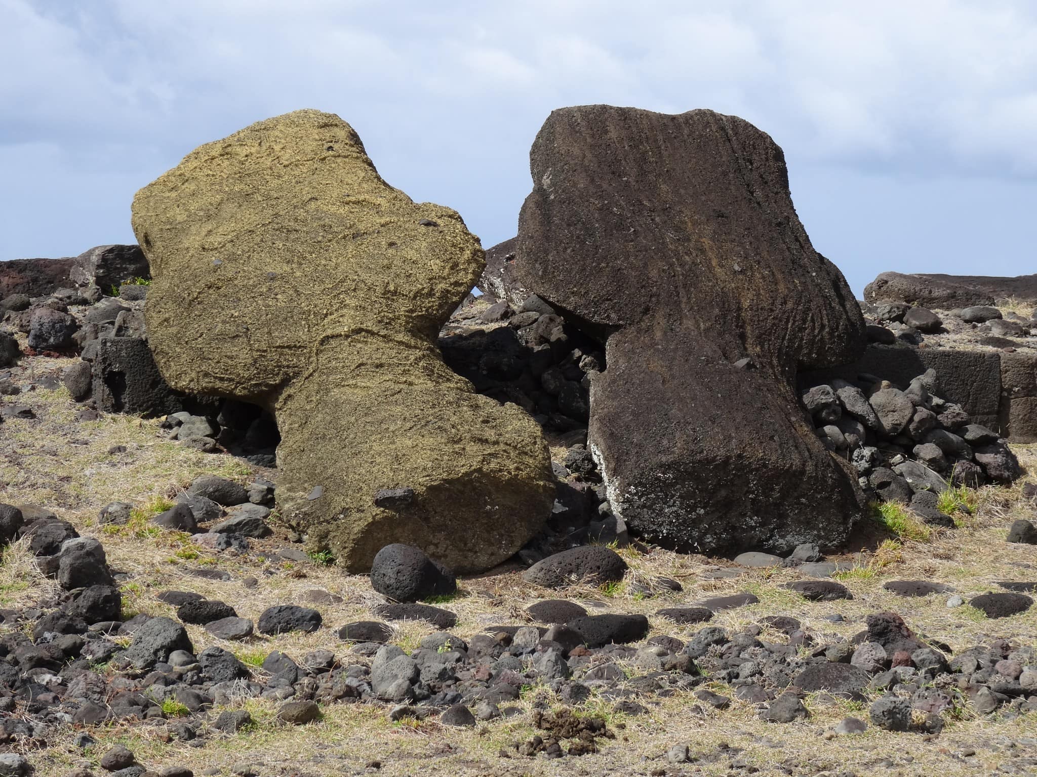 The first day I explored the south part of the island together with a guide. First we headed to the Orongo at the Rano Kau volcano. The village there is from after the time of the moai. Here the story goes that each year the men would swim to the small nearby island to get an egg from the birds. The first to return would be the head of the tribe for the coming year. We continued to the site of Vinapu. From there we went to the Huri a Urenka where there are 7 statues. These face towards the sea instead of towards the land as is the case at all other places. After this it was time to relax and have some great sea food for dinner!
