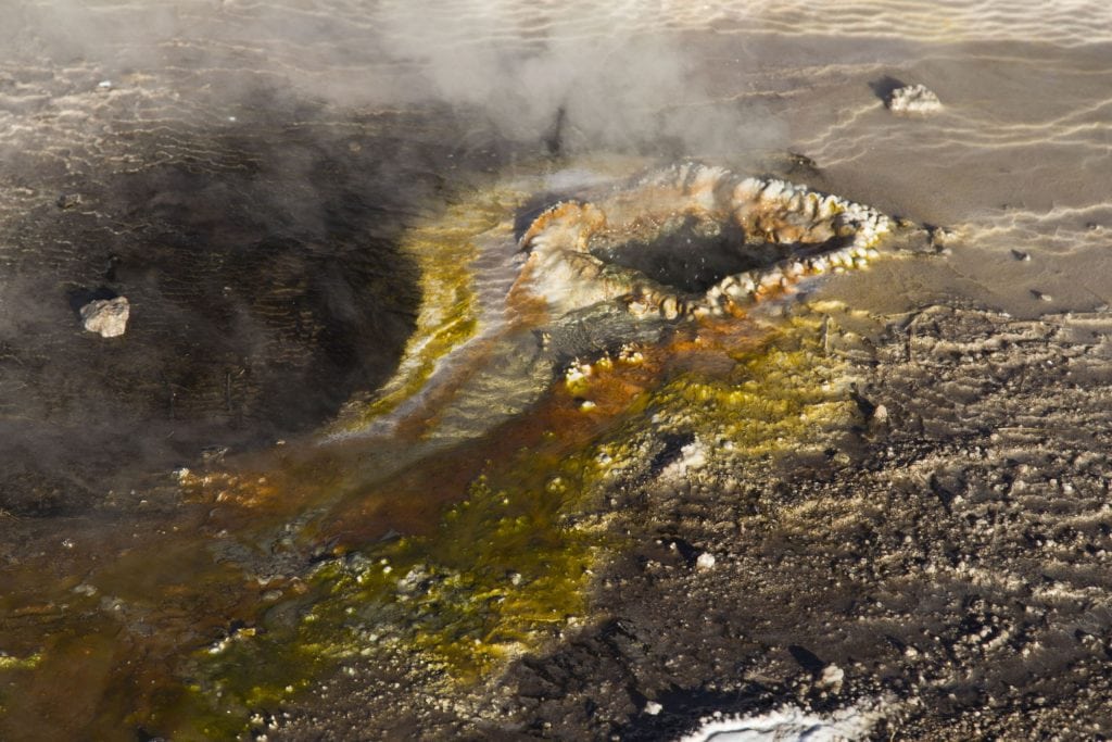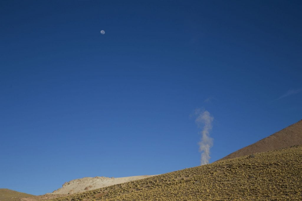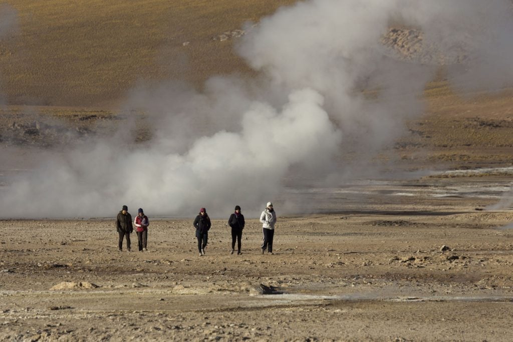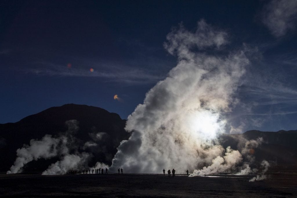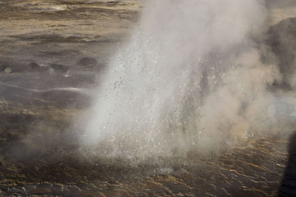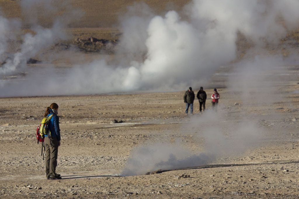 Geysers are a geological phenomenon where water is heated by magma underground and boiled and spit out trough a hole in the earth crust up to a meter high. This steam will condense in the cold air forming the steam columns up to several meters high. At the El Tatio geysers there are over 80 active geysers and the field is the third largest in the world.