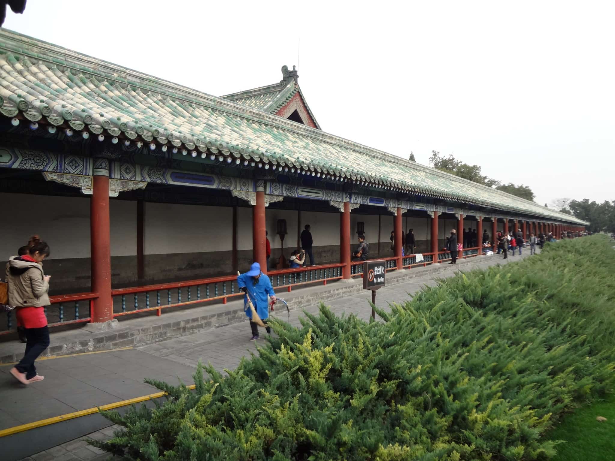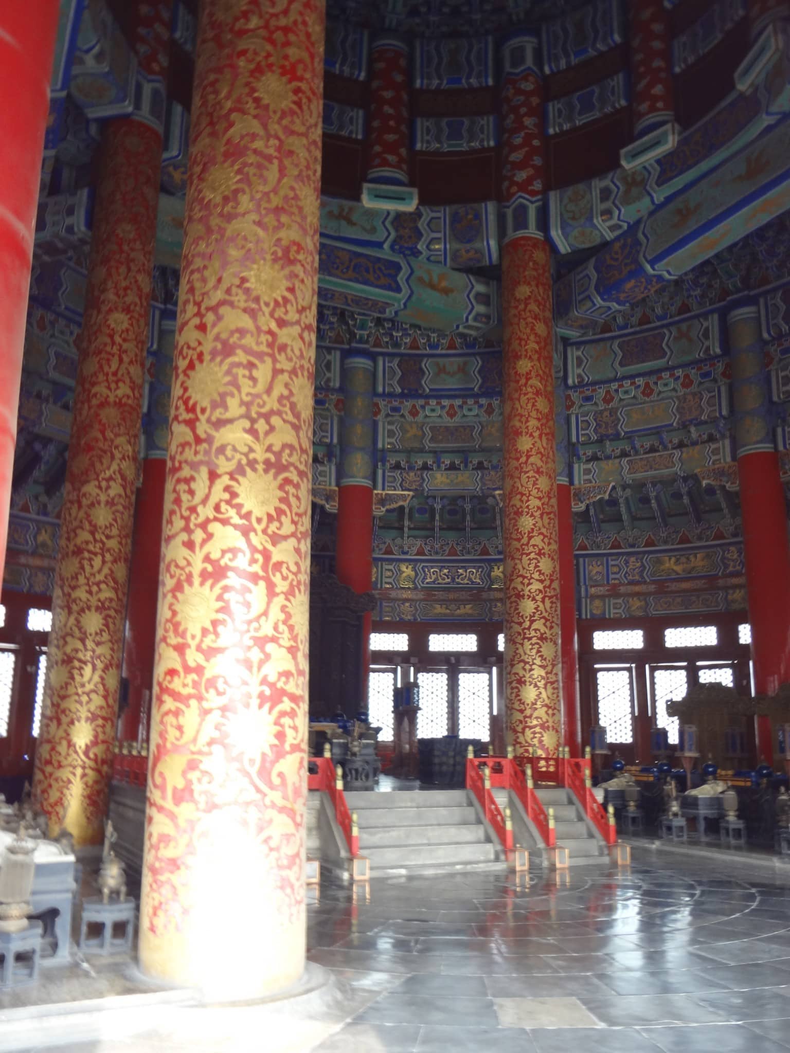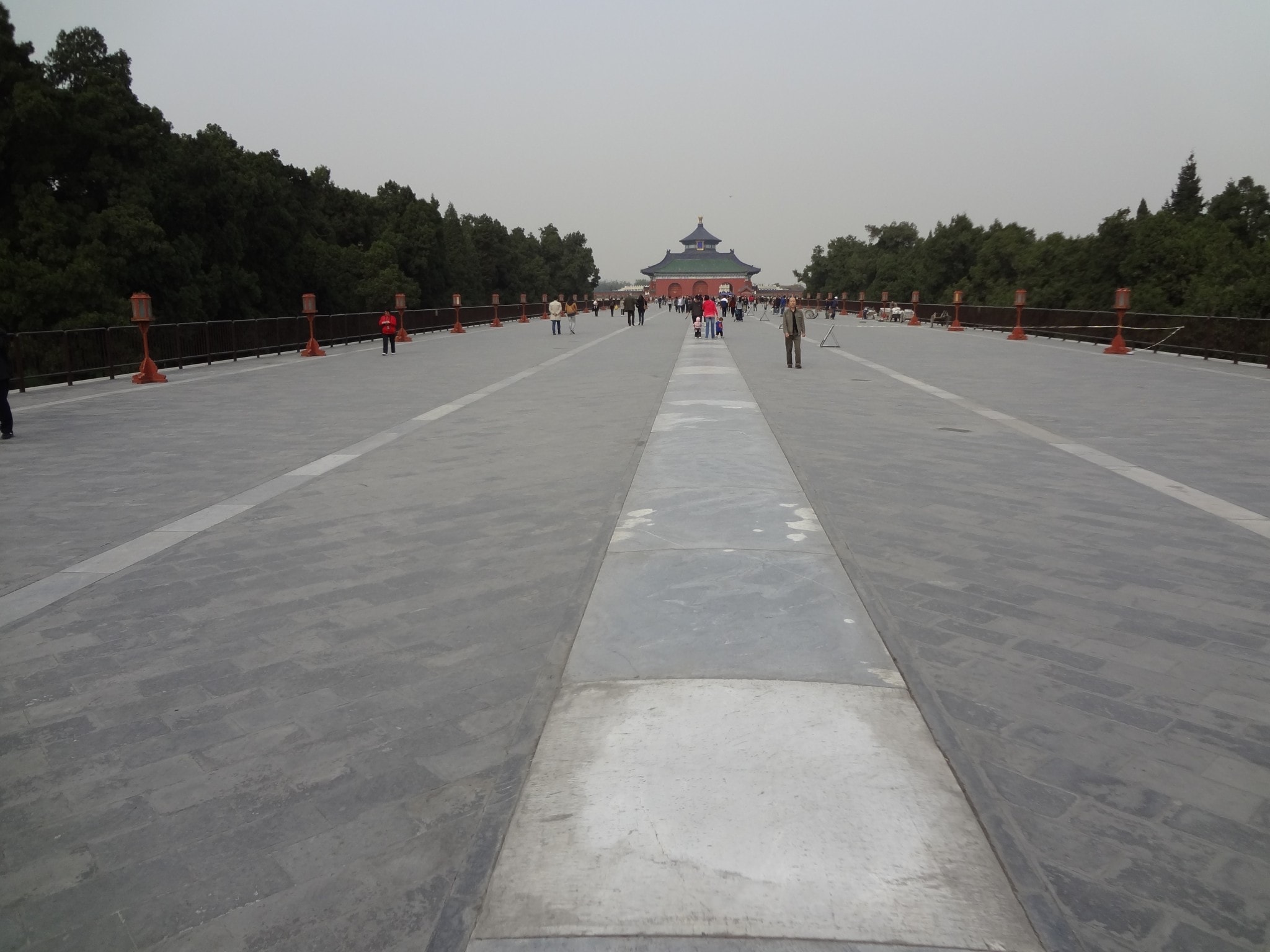 The Temple of Heaven is build back in 1420 for the Emperors of the Ming and Qing dynasties. The temple was used at the winter solstice on the highest terrace of the alter (heaven, the others two being earth and humans). The big road only to be used by the Emperor himself mainly dressed in yellow colors. From the alter along the echo wall to the temple for good harvest.