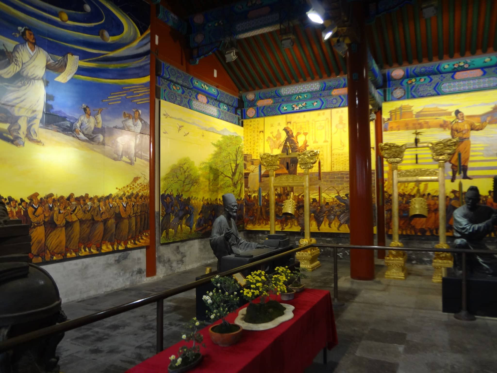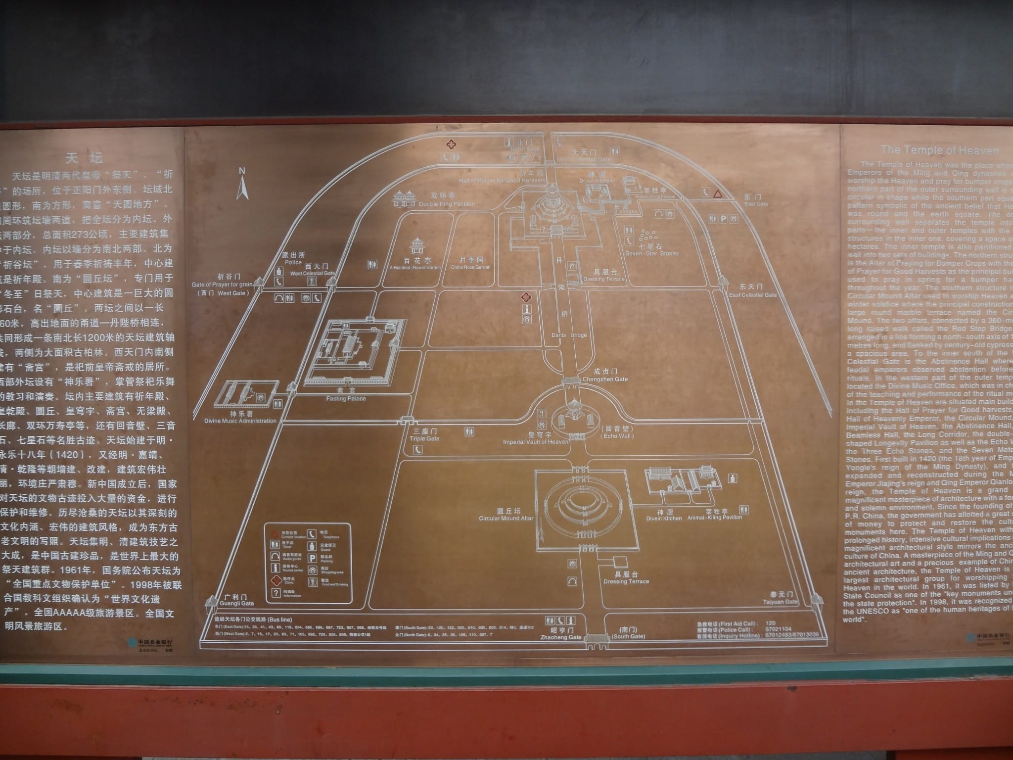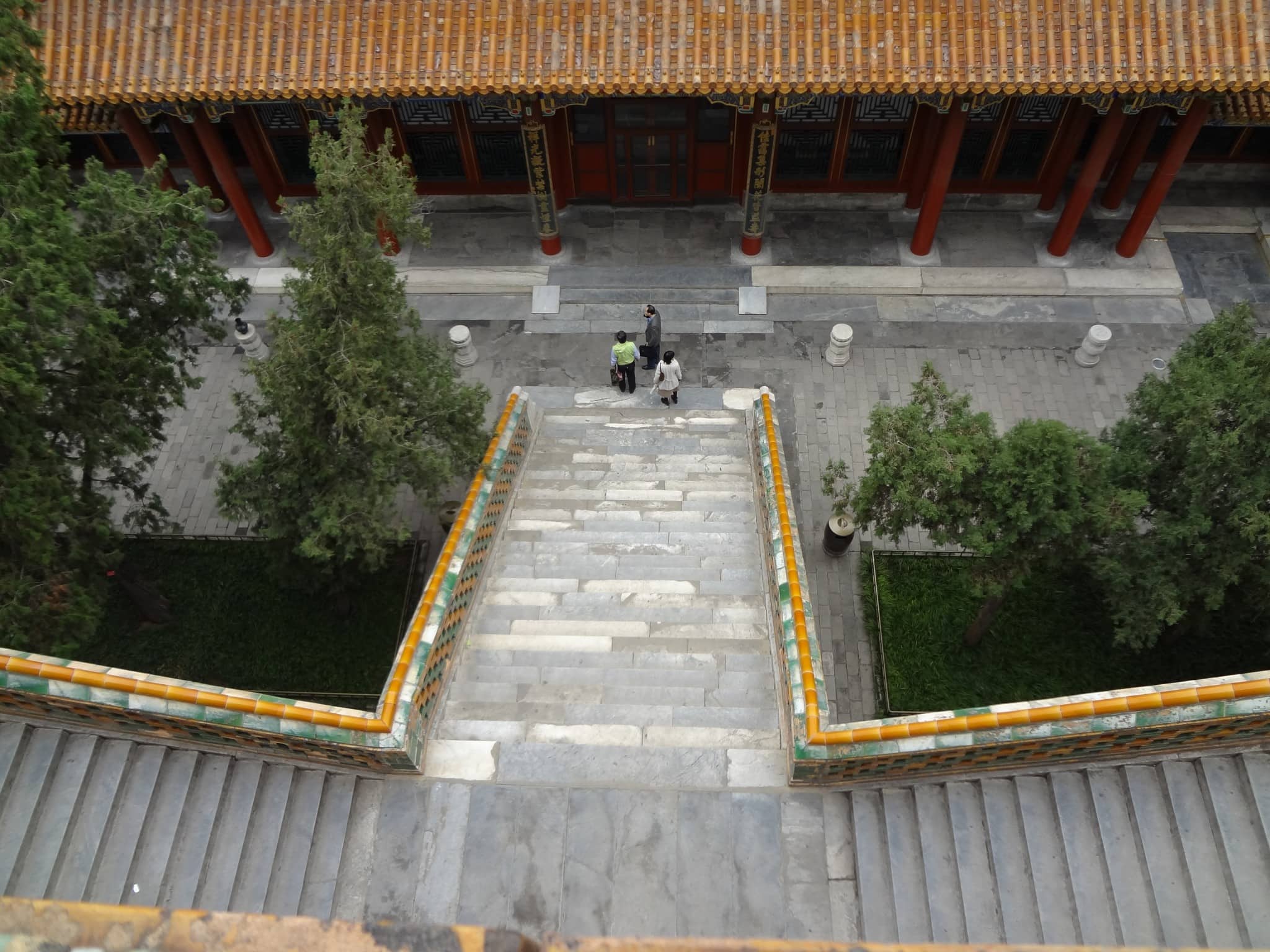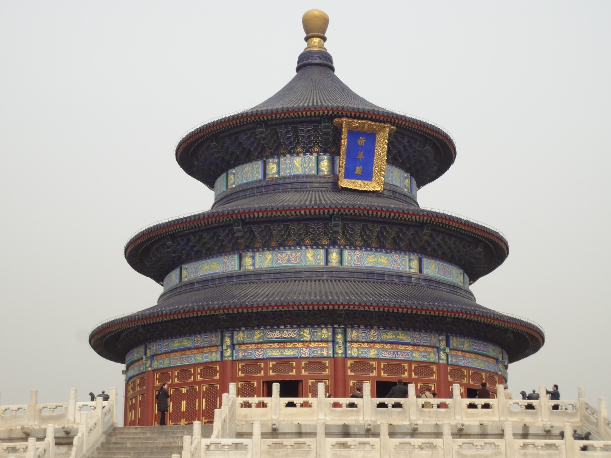 The Temple of Heaven is build back in 1420 for the Emperors of the Ming and Qing dynasties. The temple was used at the winter solstice on the highest terrace of the alter (heaven, the others two being earth and humans). The big road only to be used by the Emperor himself mainly dressed in yellow colors. From the alter along the echo wall to the temple for good harvest.
