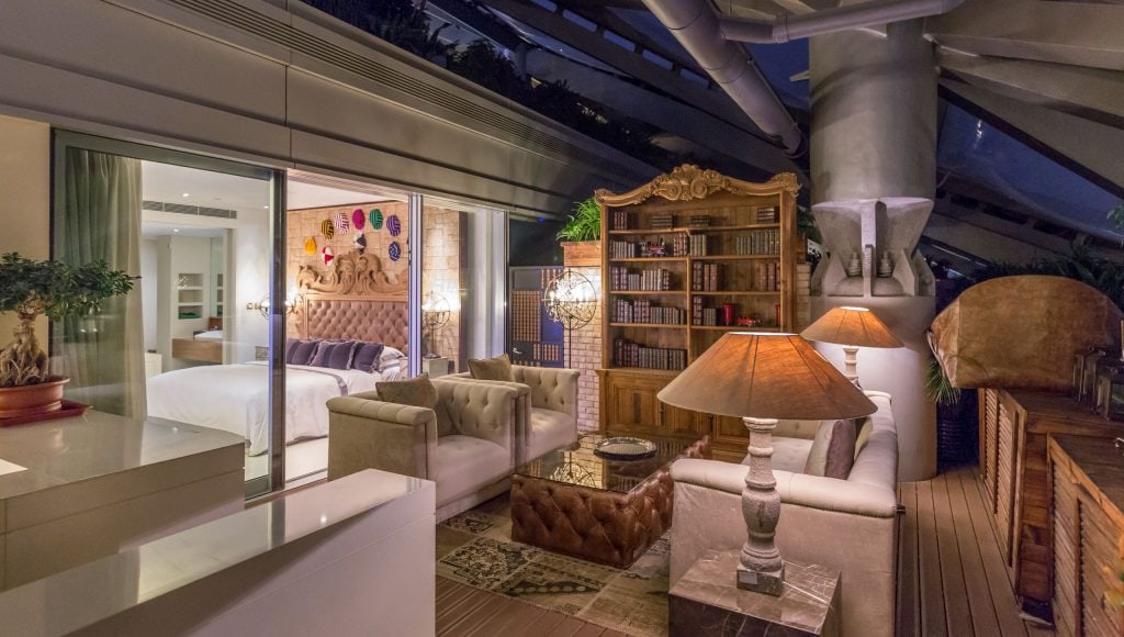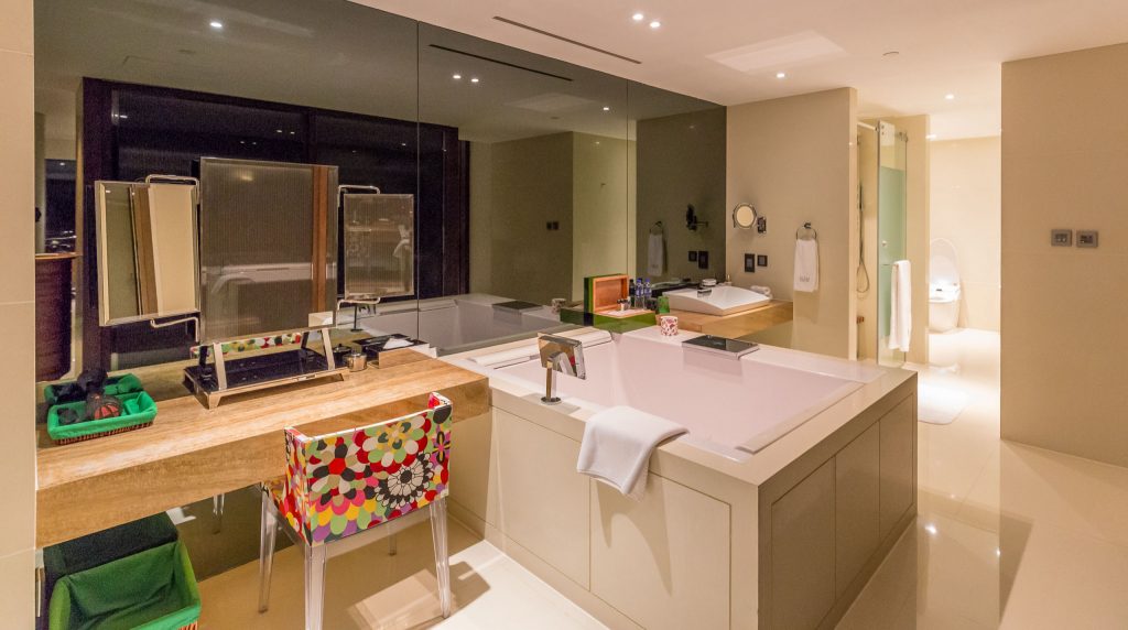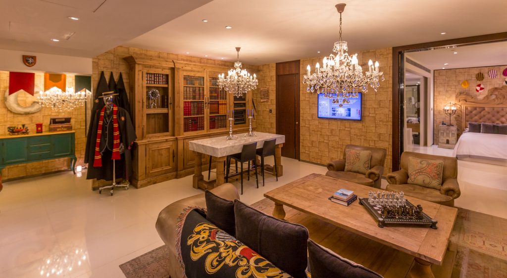 The lagoon suites all have a 5-meter outdoor swimming pool on the terrace. Some have a Jacuzzi but they are all differently themed. Other rooms include (see the gallery below and the movie too) a Harry Potter room, a Miami suite, Classic Sports room or even a Star Wars room with a life-size Stormtrooper. I didn’t see the last room and I regret that as I’m a huge Star Wars fan!
