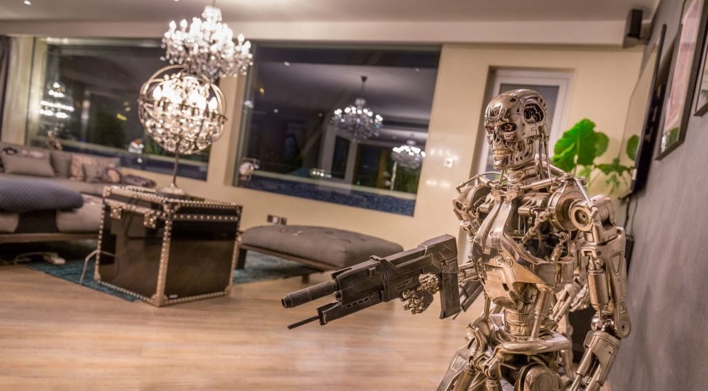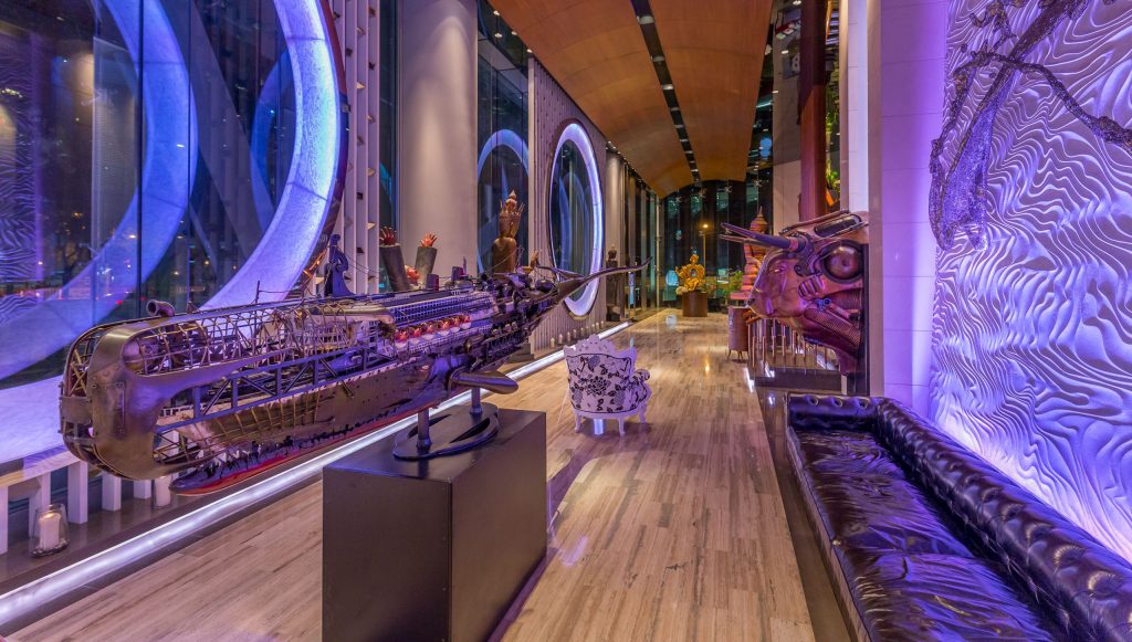 The mini-bar; coffee and tea are all complimentary which is something I like in a hotel. Beside the Deluxe Rooms there are also similar rooms with terraces which include an outdoor seating area. It’s not outdoor in the open air but outdoor inside the big hall of the shopping mall but don’t worry you’ll have 100% privacy. The lagoon suites are however their signature as they are all differently themed. One room I saw was the Terminator room as you can see in the following photo. Isn’t that amazing?