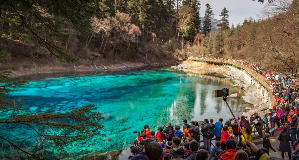 Jiuzhaigou translates to Nine Village Valley which refers to the nine Tibetan villages in the area of which seven are still inhabited. These villages now sell handy crafts to the thousands of visitors exploring the park daily. To get the real Tibetan feeling you need to visit Lhasa in Tibet of course. It’s a remote area and first explored by the Chinese half a century ago when lots of logging took place. Luckily the government quickly intervened and made Jiuzhaigou a national park and a tourist destination.