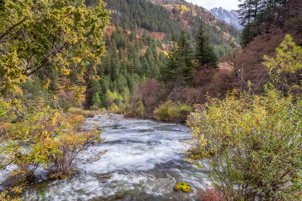 The park including buffer zones is huge covering over 1300 sq. kilometers in the southern area of the Mingshan mountain range. Altitudes range from 2000 meter to peaks of almost 5000 meters high. Jiuzhaigou Valley is between 2000-3000 meters but Huanglong is well over 3000 meters. Mixed forest covers the park of which big areas are primeval forests. These trees have been standing for ages and during seasons they change color. I visited in autumn with green-yellow-brown colors but in summer they are full green. In winter Jiuzhaigou is covered in snow. If you are lucky you can see a wild panda, but you would be one of the first!