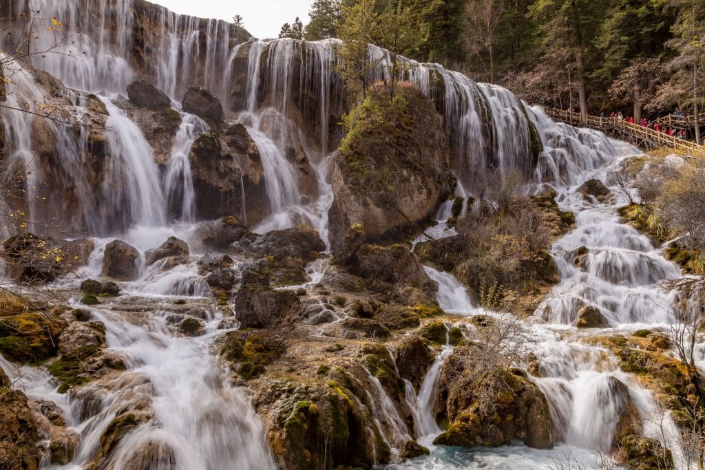 The Pearl Shoal is a limestone area over which a thin layer of water streams over it because of a small slope. These streams come together at the Pearl Waterfalls which are over 300 meters wide. It’s the most beautiful waterfall system in Jiuzhaigou Nature Park. It cannot be compared with the Iguazu Falls in South America which are over 2 kilometers wide but still a must-see place. On a crowded day it will be difficult get make a good photo of the falls as it tends to get very crowded. I was lucky to visit on a day it was quiet.