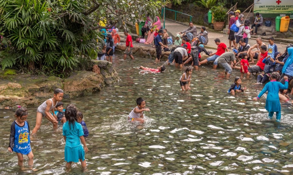 The Sari Ater Hotel & Resort is huge with many hot springs and pools filled with hot natural water from the Tangkuban Perahu volcano. You could also overnight here and experience more of the many activities the resort offers. I only had lunch there and walked around the property. I’m not so much into hot springs myself but my daughter (see photo below) wanted to relax a bit for an hour at the hot springs. After she was finished it was time to continue to have a quick look at the Floating Market Lembang and the Curug Cimahi Waterfall.