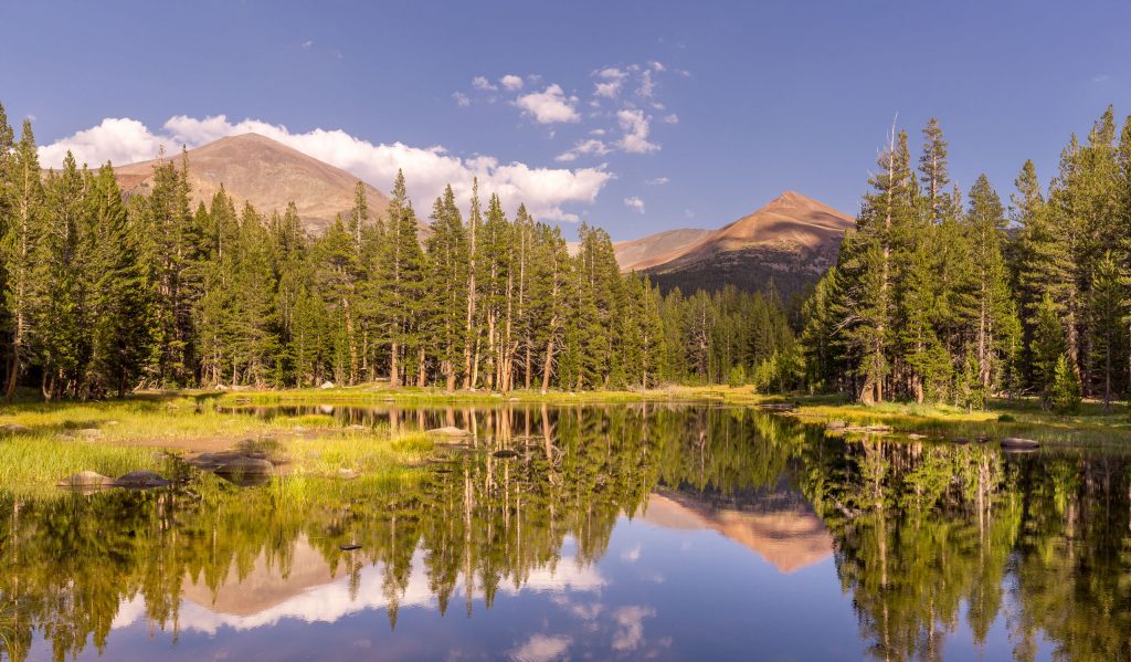 The Tuolumne Meadows are the place to go for a nice picknick or if it’s to earlythen do that at Ellery Lake which is the next stop. Meadows are a sub-alpine flatland just below the tree line. In summer it’s green, the Tuolumne River flows, flowers bloom and animals graze there. It’s beautiful. The Tuolumne Meadows refer to a big part of the flat highlands of Yosemite Park, but the best views are along Tioga Pass Road. Look at this beautiful view below!